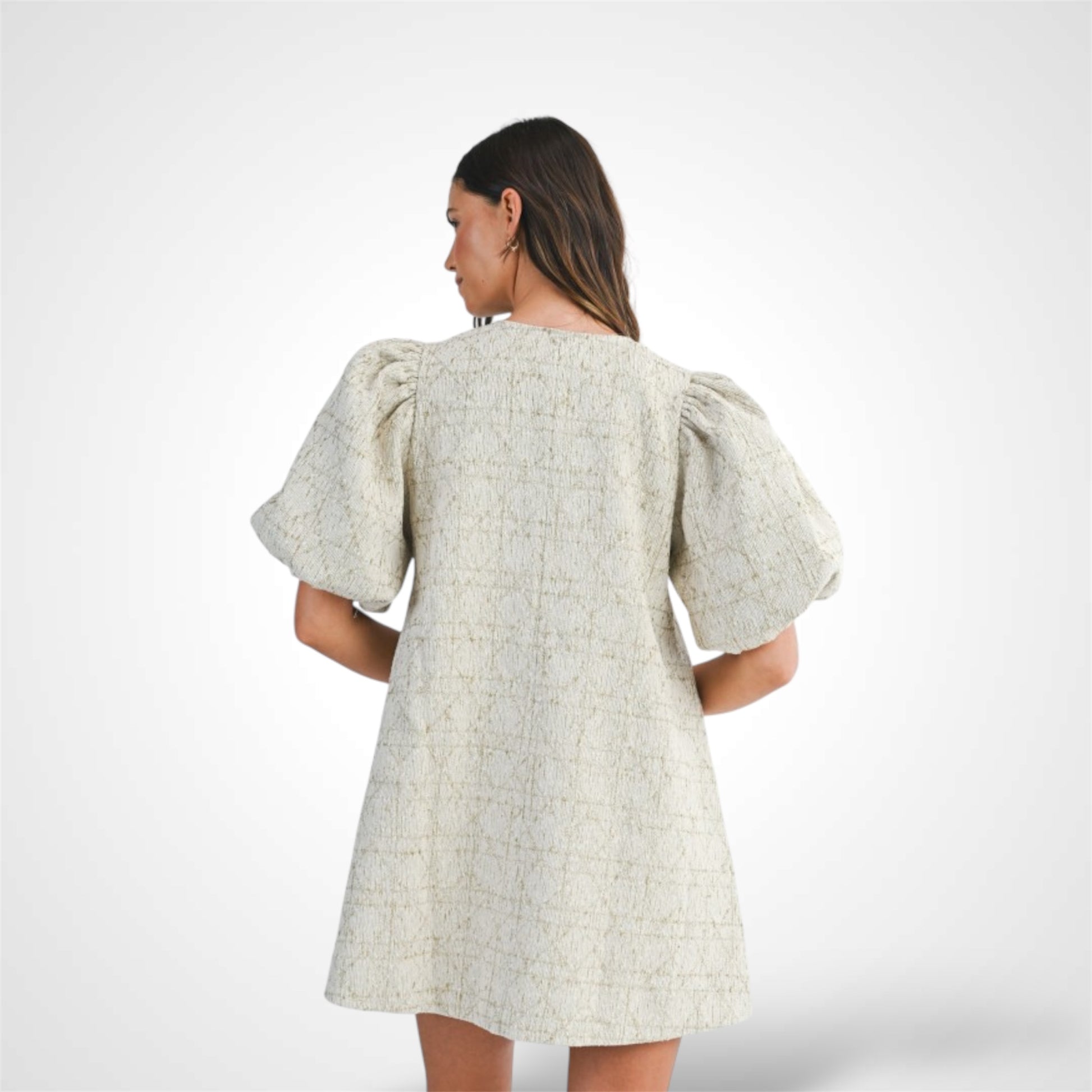 BOUCLE TEXTURED TWEED PUFF SLEEVE MINI DRESS