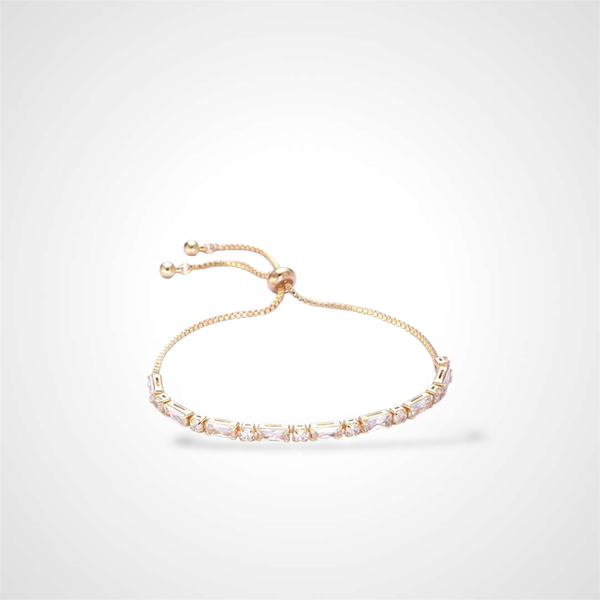 Update your look with this timeless Baguette Bracelet! Its adjustable fit ensures perfect comfort, while its 18K Goldfilled construction delivers glam, hypoallergenic elegance. Show off your style with the perfect fit and look!