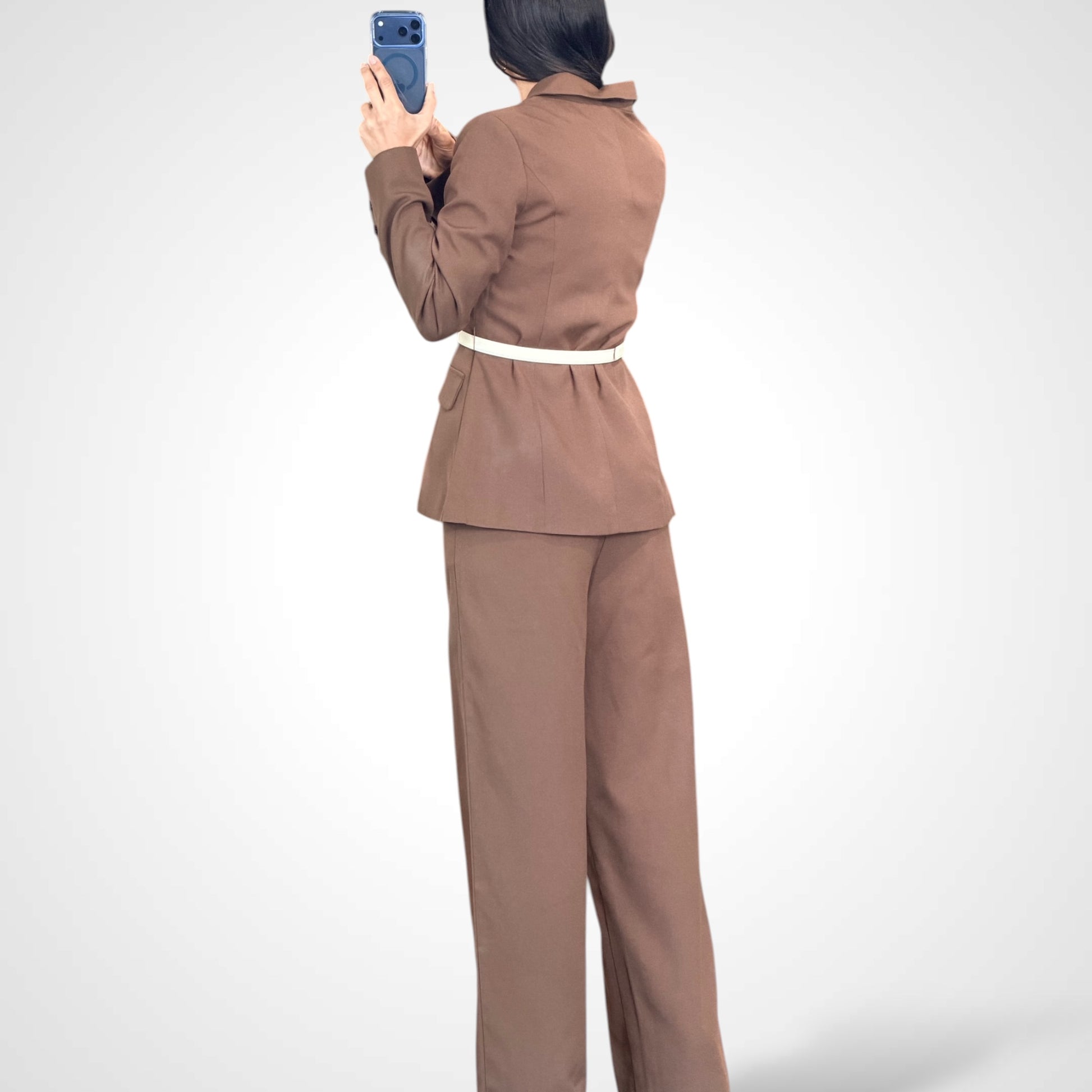Contrast Brown Trim Blazer and Pants Set