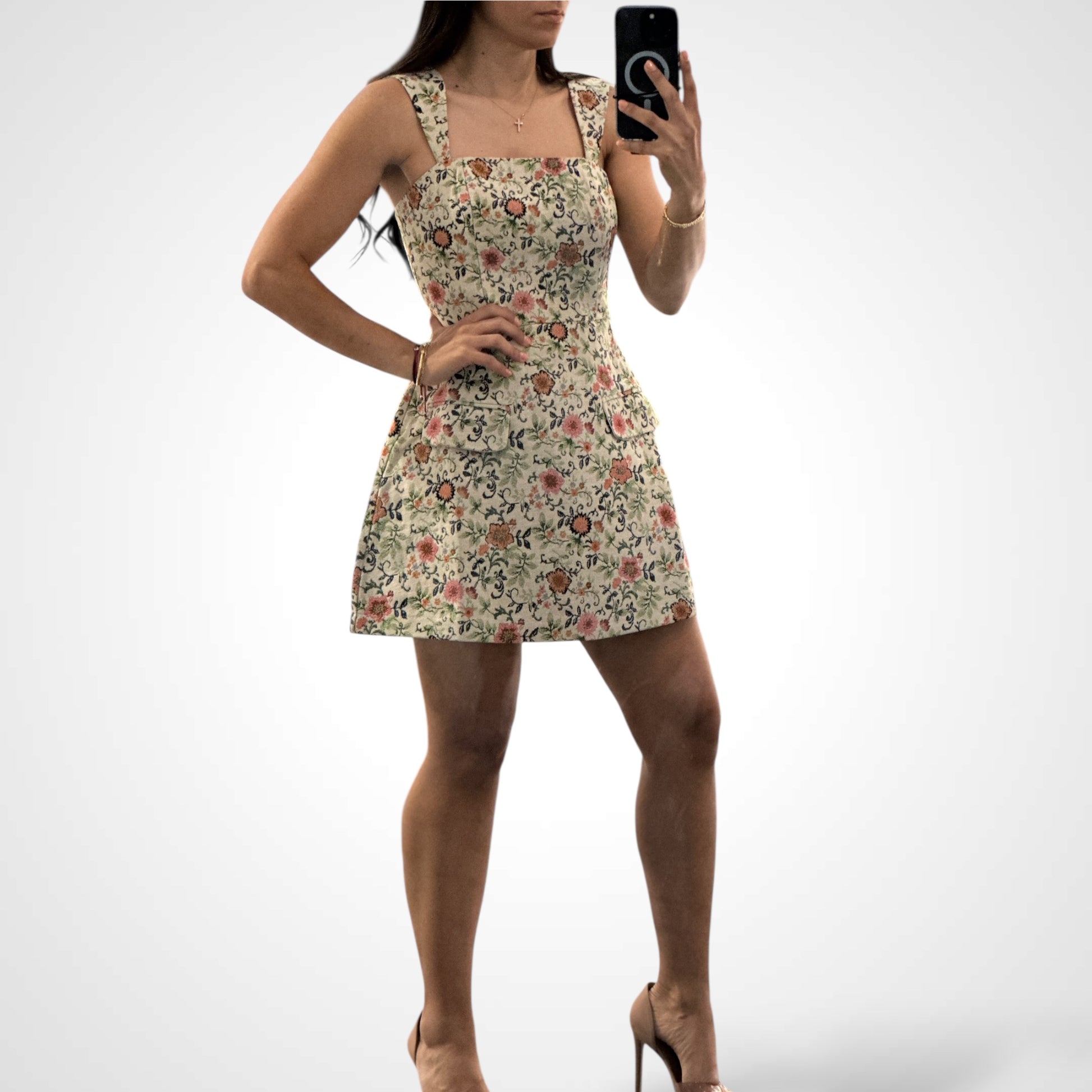 FLORAL JACQUARD STRAP SHOULDER MINI DRESS SKORT