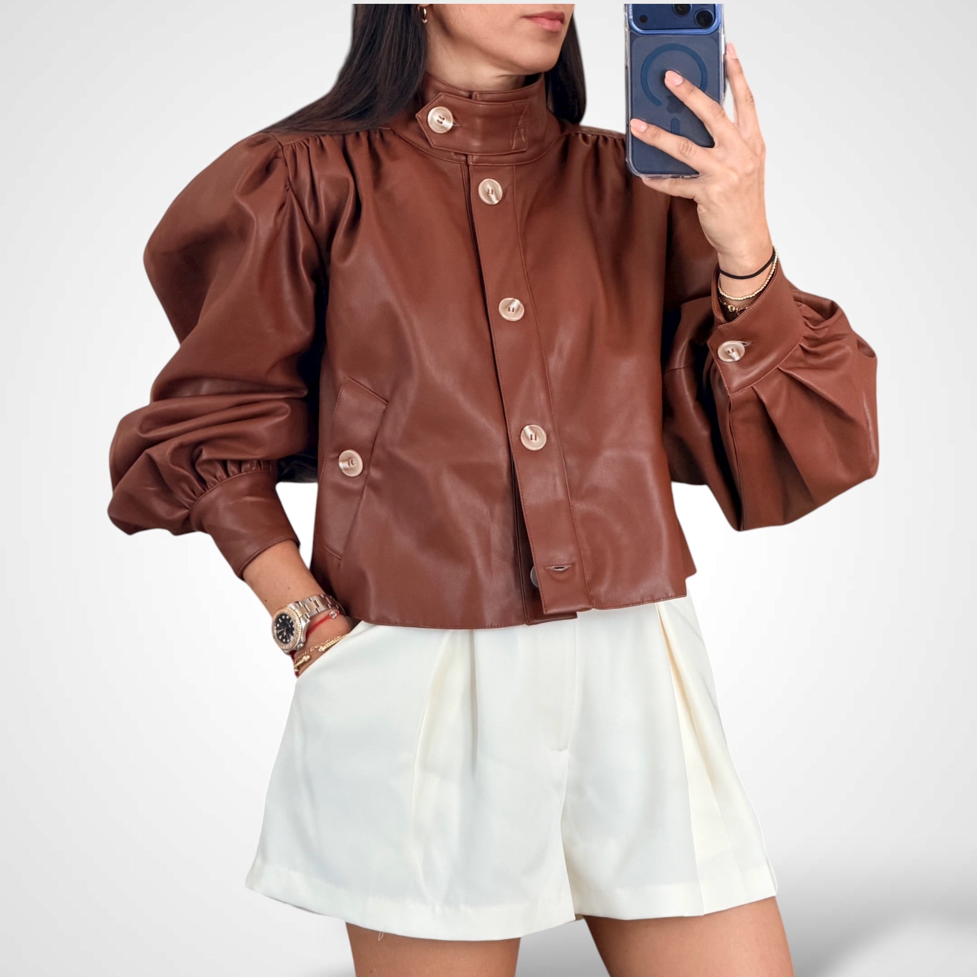 PUFF SLEEVE FAUX LEATHER CROP JACKET