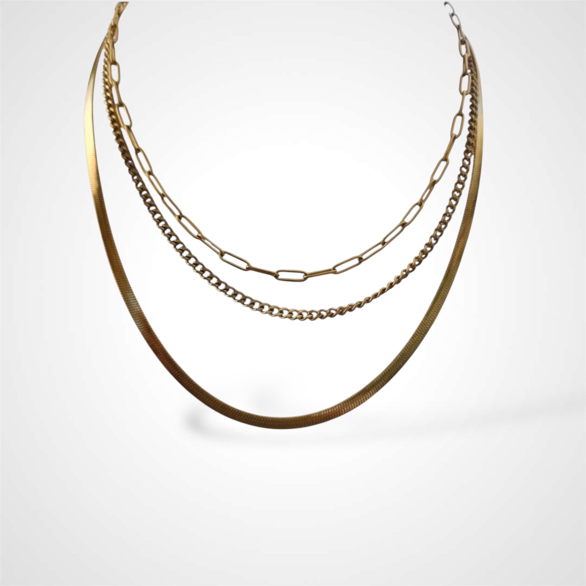 Elevate your ensemble with SIRELA, a versatile 3-in-1 layering necklace crafted from premium 316 stainless steel. This hypoallergenic piece offers sophisticated styling options while ensuring comfort for sensitive skin. The elegant layered design transitions effortlessly from daytime refinement to evening allure, creating a polished statement for any occasion.