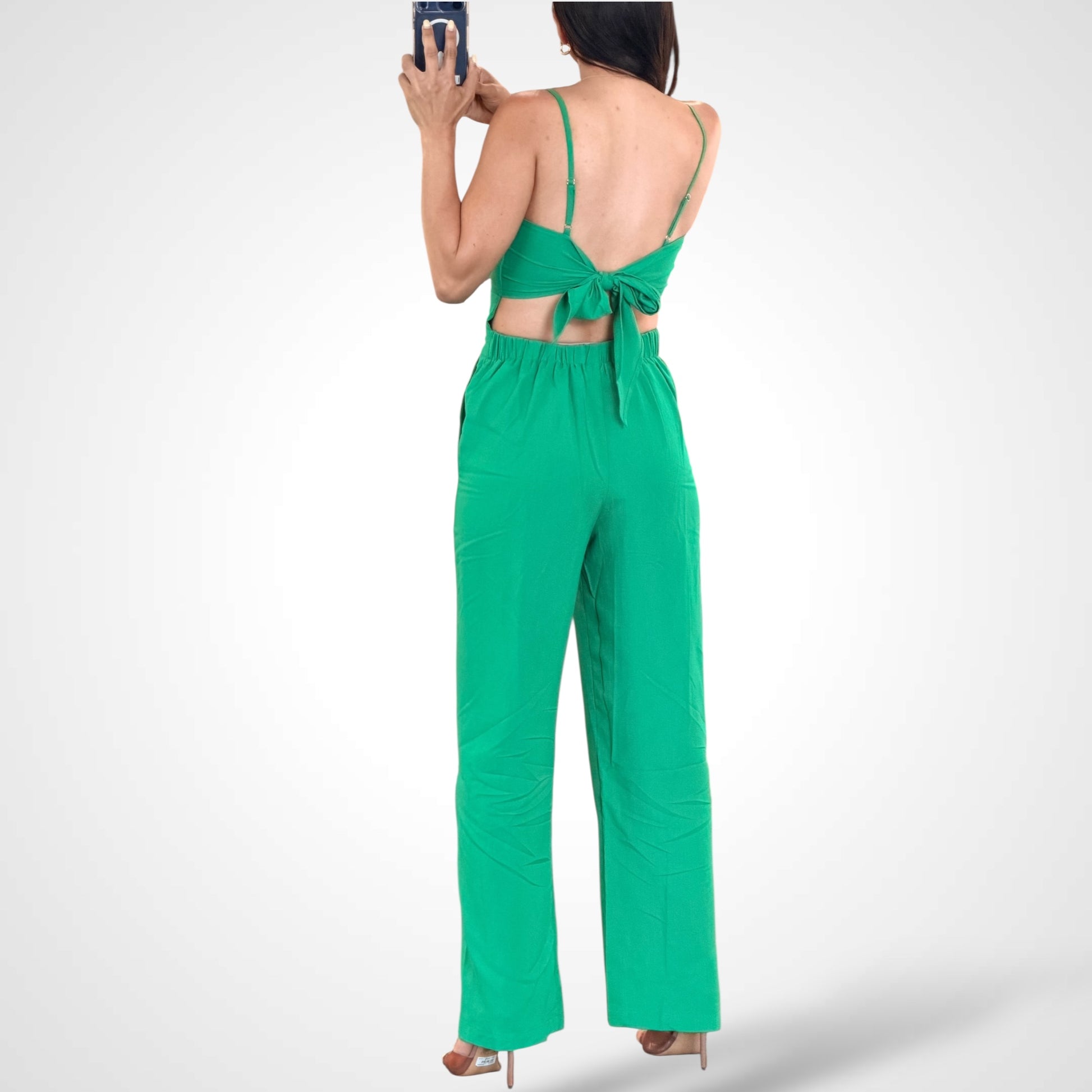 SOLID SLEEVELESS CUTOUT DETAIL OPEN BACK JUMPSUIT