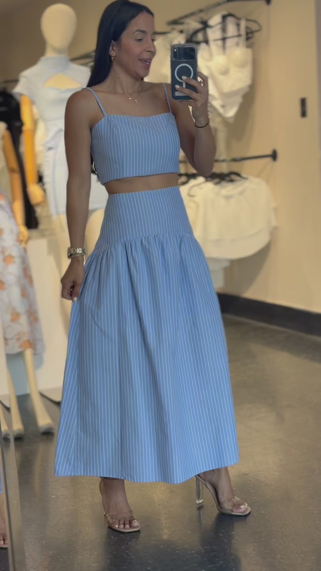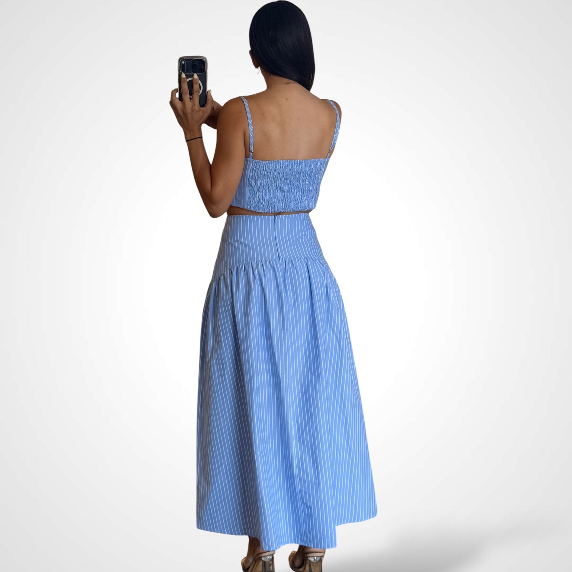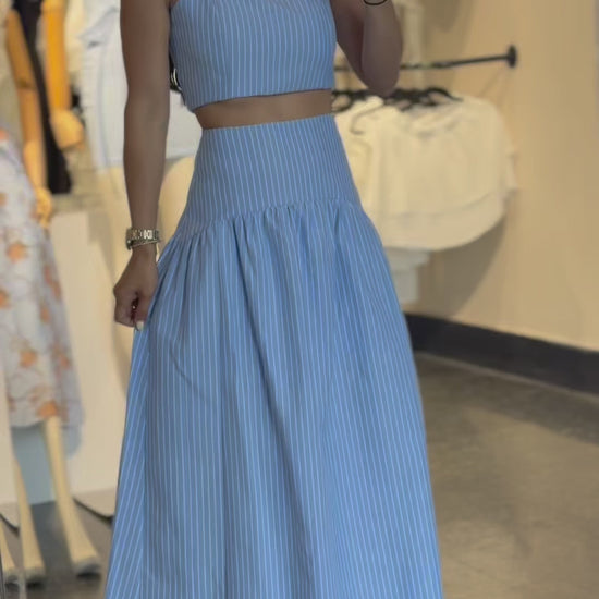 Stripe Crop Top with Flared Maxi Skirt